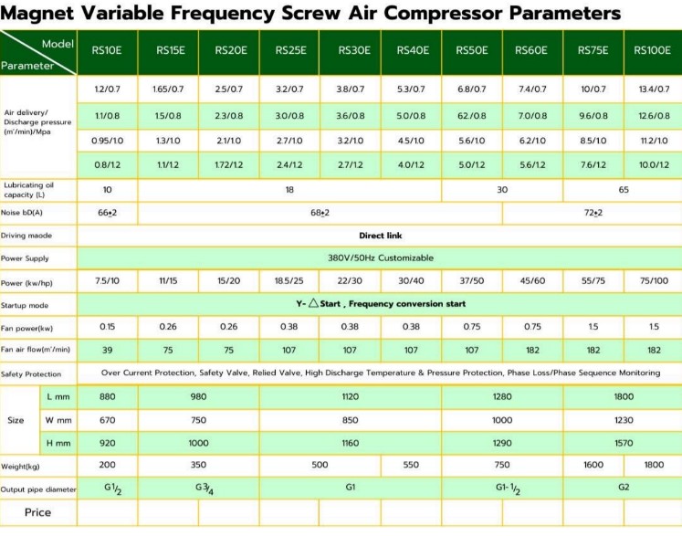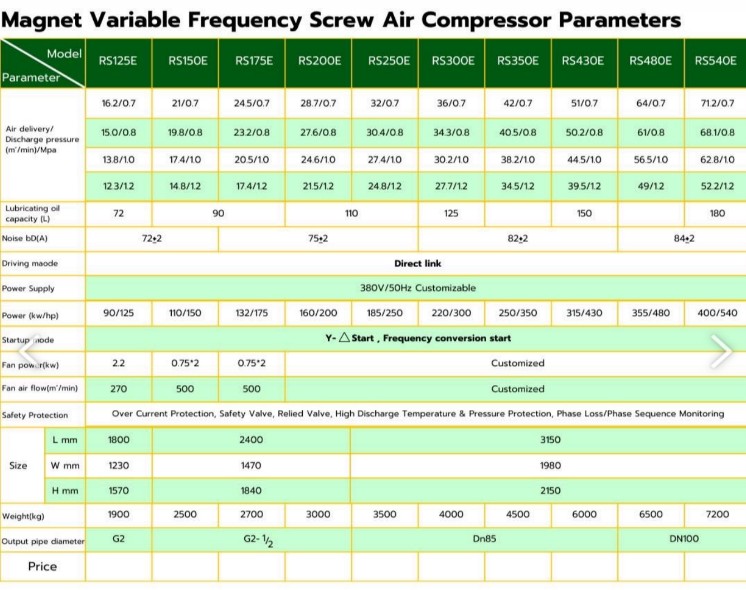 Products > หมวดหมู่สินค้า 01 > Magnet Variable Frequency Screw Air Compressor Parameters