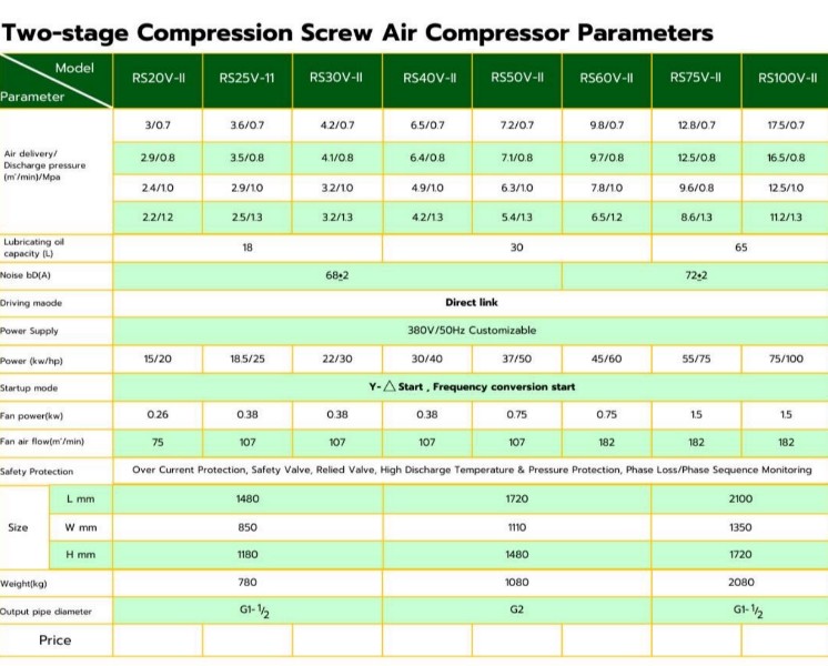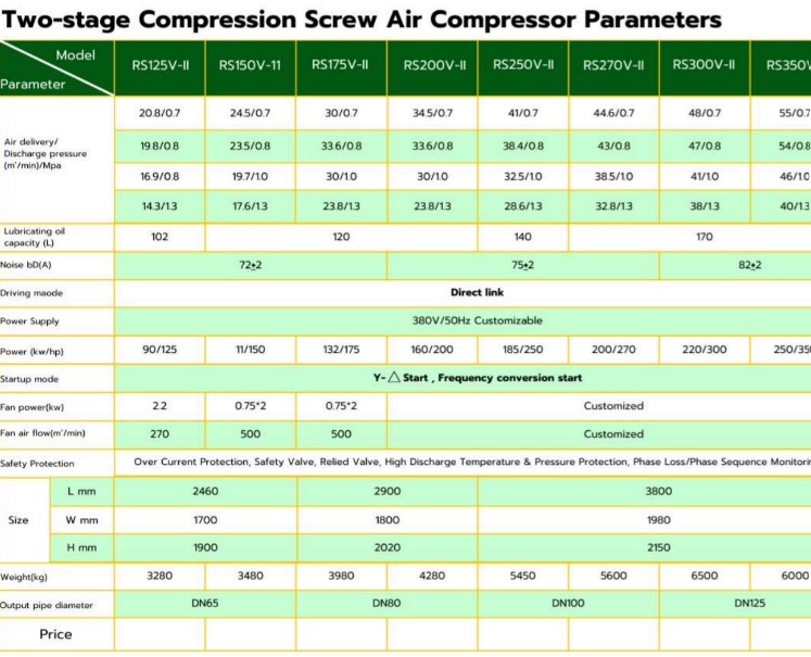 Products > หมวดหมู่สินค้า 01 > Two-stage Compression Screw Air Compressor Parameters